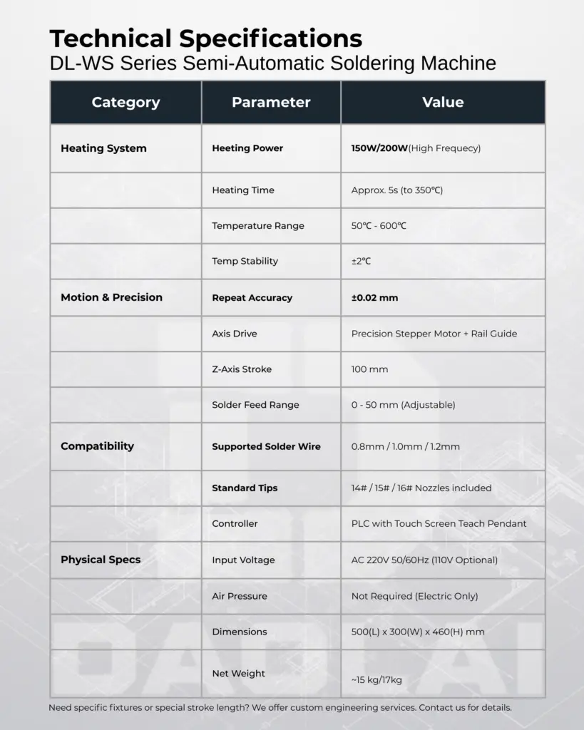 DL-WS-150/200 Series Intelligent Semi-Automatic Soldering Machine